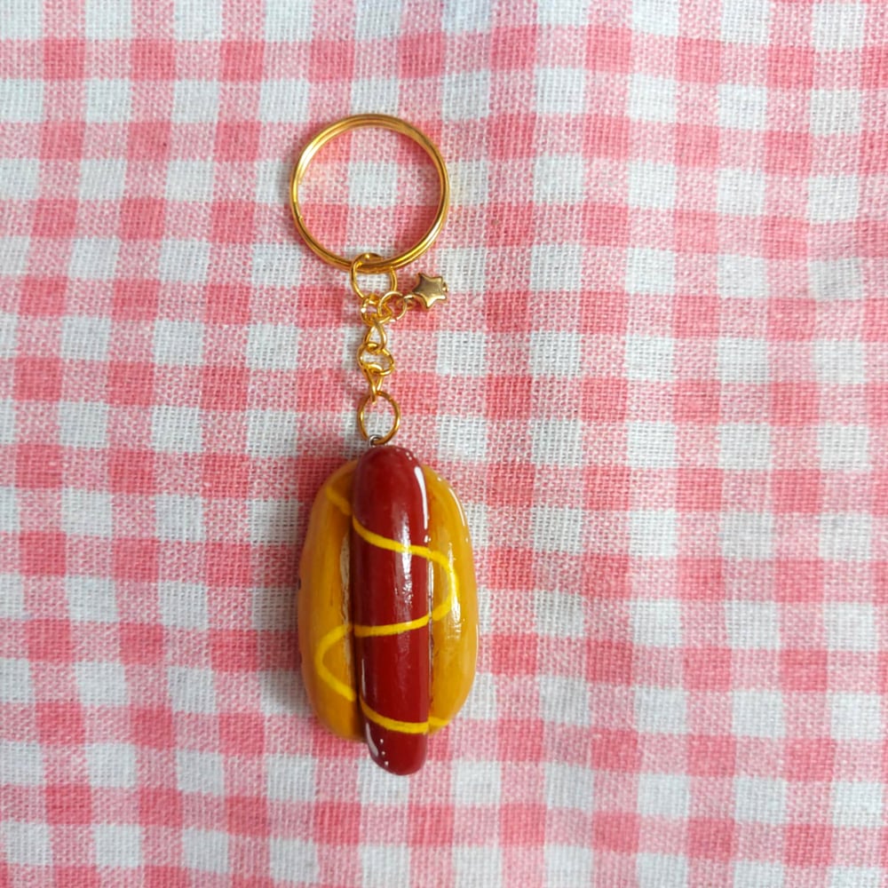 Porte-clé Hot Dog, entièrement fait à la main, du modelage, à la peinture jusqu'au vernis !